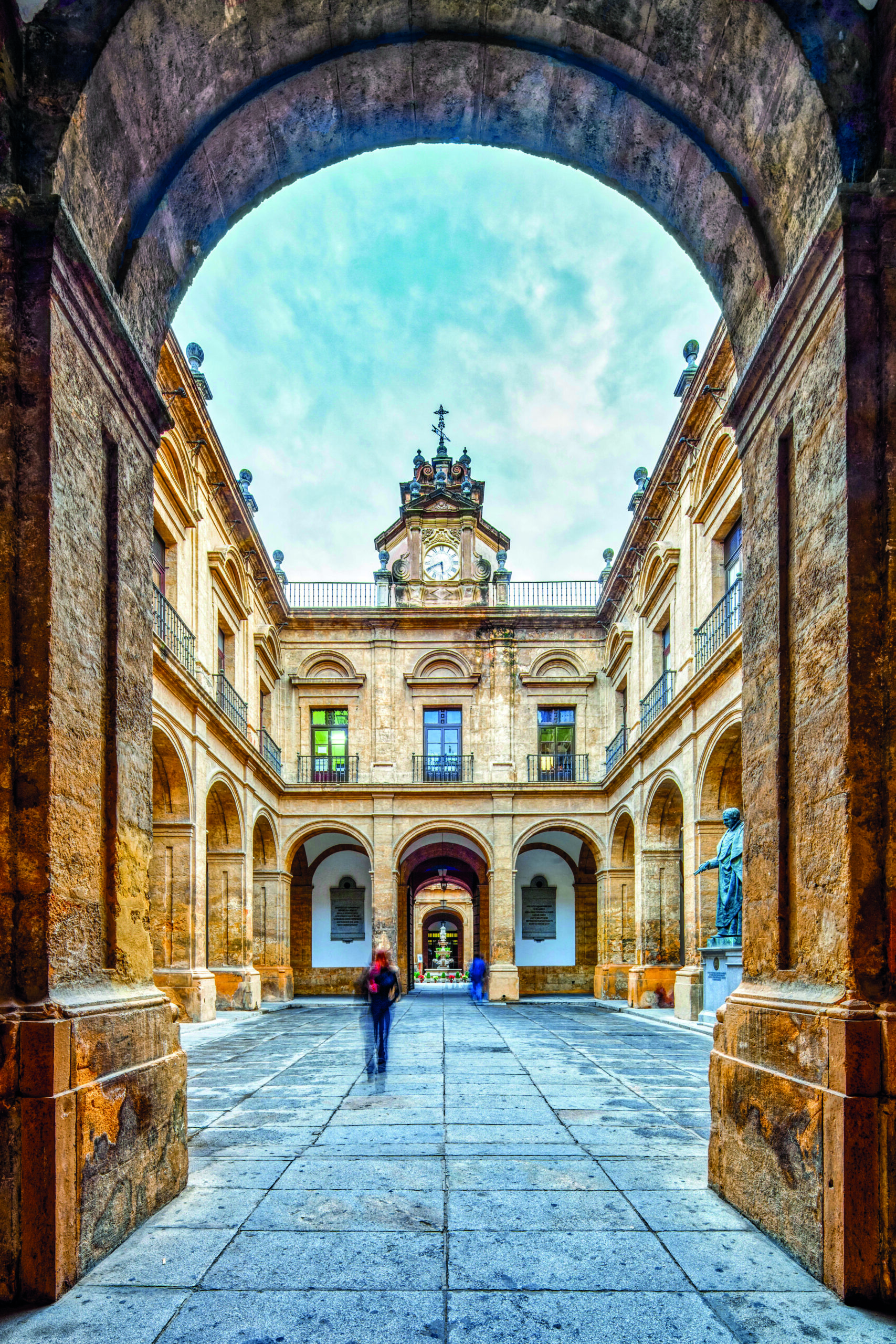 To reach the top, I followed a spiral of 34 long brick ramps, which the mosque’s muezzins once ascended on donkeys five times daily. From the pinnacle I gazed across the slow, pale-green river of Guadalquivir (a Spanish corruption of the Arabic wadi-al-kibir, or great valley). I could make out the glinting tiles of Triana district, where I would head later for tapas with a chilled Pedro Ximénez sherry soundtracked by the guitars and castanet-clacking of flamenco dancers, the impassioned Andalucían music rooted in Al-Andalus. As for the sight of the Plaza de Toros de la Maestranza bullring and the moated Royal Tobacco Factory – now part of Seville University – they were enough to start me humming the Toreador song.